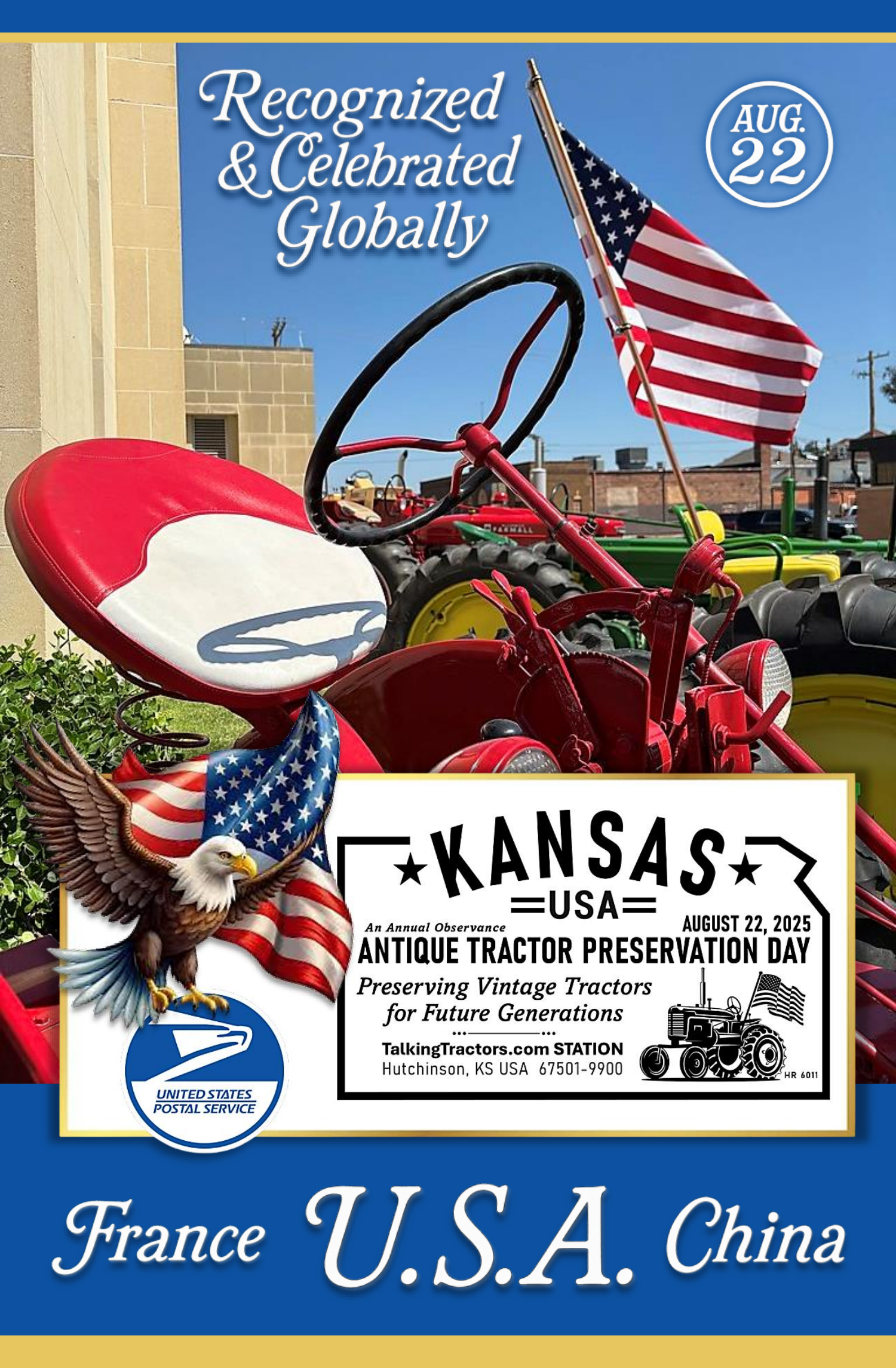 HUTCHINSON, KS, November 05, 2025—The United States Postal Service (USPS), an independent agency of the executive branch of the United States federal government, has completed its tabulation of mail-in requests for the August 22, 2025, Antique Tractor Preservation Day Pictorial Postmark. The results confirm that the appreciation for antique tractor preservation continues to extend well beyond the borders of the United States, with 50+ requests received from across the nation and internationally, including submissions from France and China.